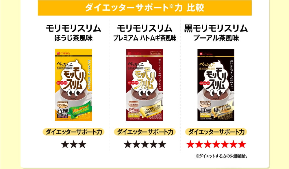 いま話題となっているのが、その「美容健康茶モリモリスリム」のダイエッターサポートをパワーアップさせたバージョンの「黒モリモリスリム」。